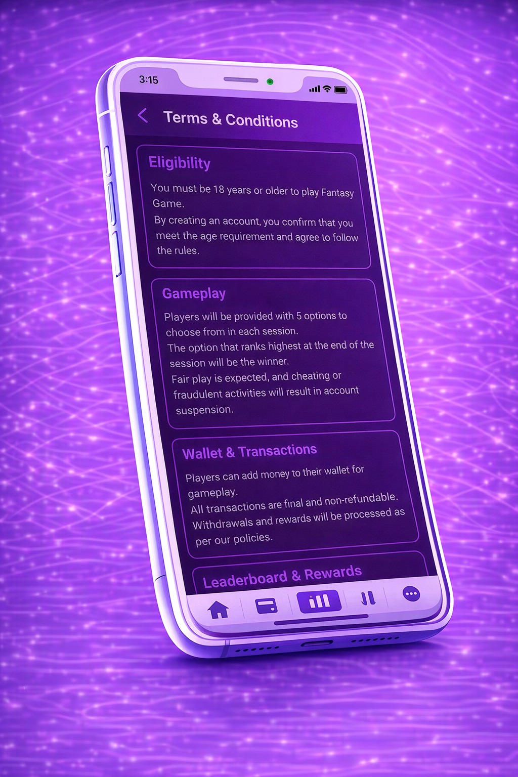 Fantasy gaming application with wallet integration, points system & smooth gameplay built using React Native.